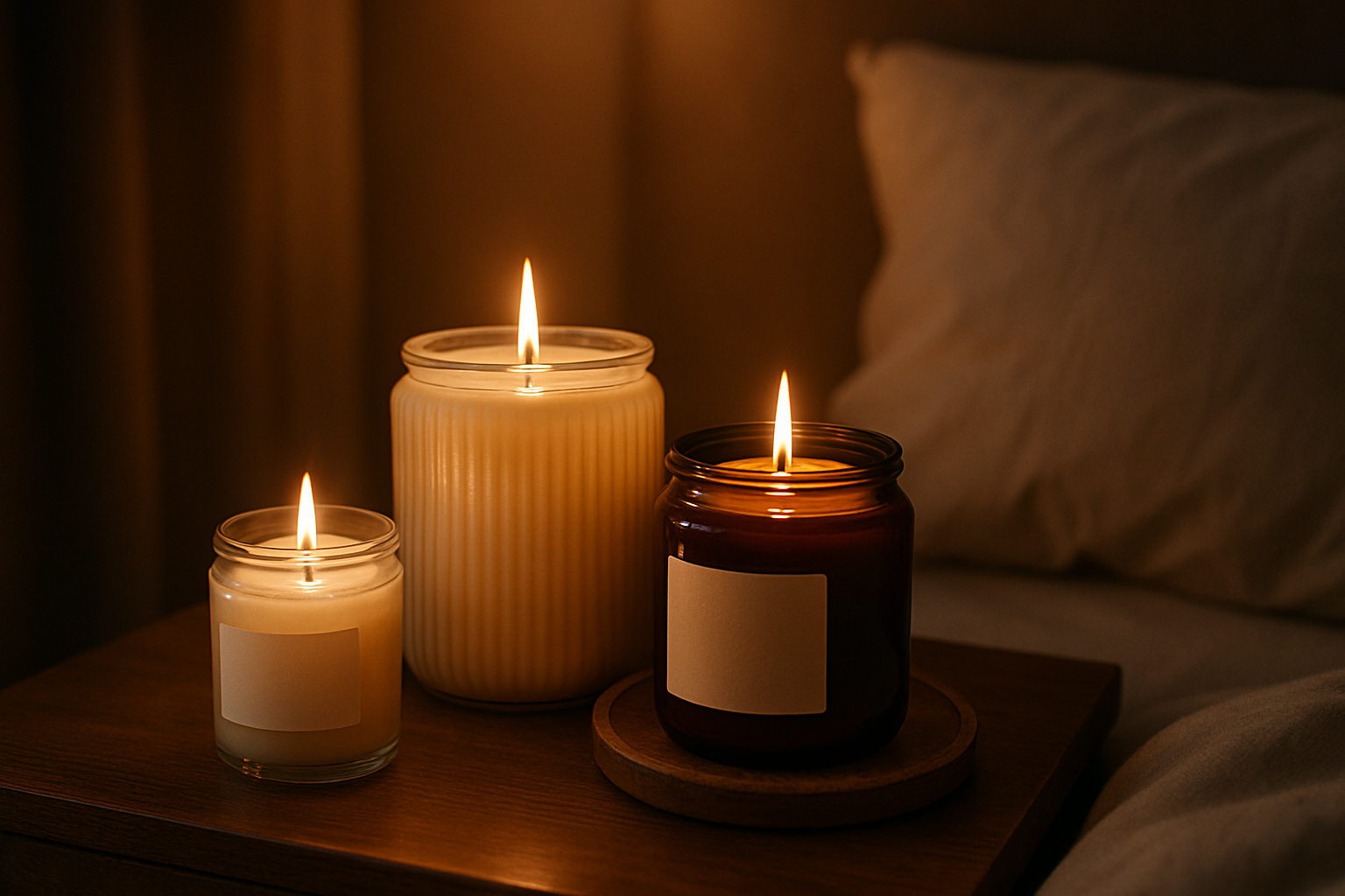 Velas ecológicas que crean un ambiente íntimo y sensual. Elaboradas con cera de soja biodegradable.